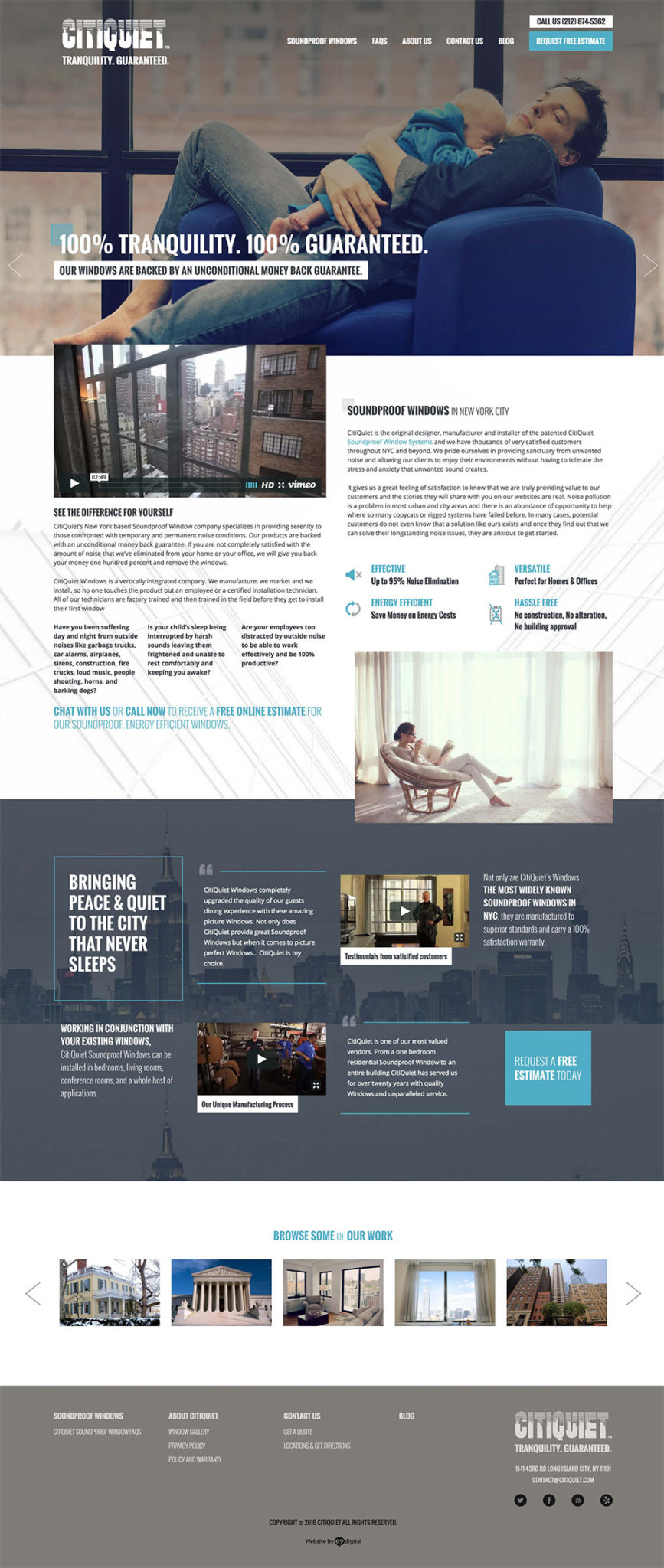 When CitiQuiet came to e9, their website needed a lot of help. While it wasn’t lacking in content, it had technical problems and needed direction. CitiQuiet’s product offers its customers a quiet space, a tranquil environment, and peace of mind, but their website was noisy and cluttered. They called on e9 to transform their website into a virtual extension of their product and purpose.